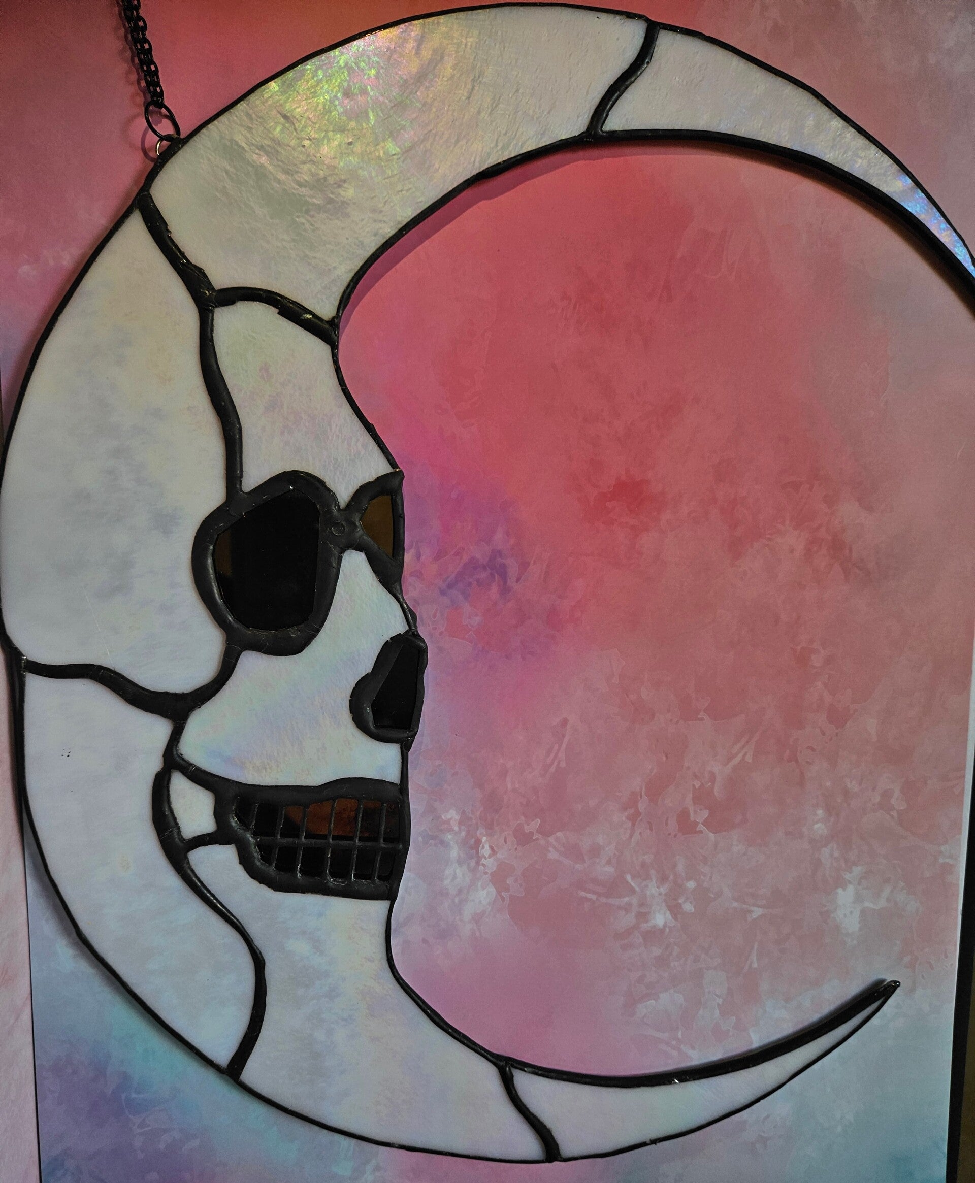 White iridescent with vintage mirror glass (Eyes, Mouth, Teeth)