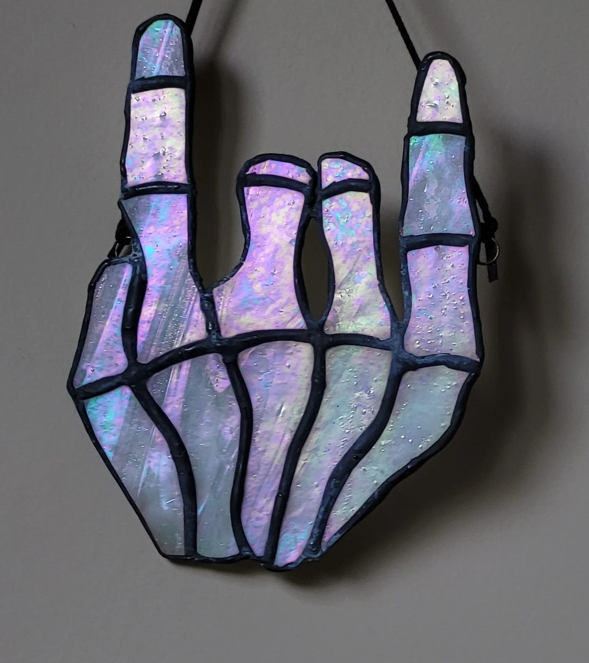 Devil horns hand made in iridescent white glass.